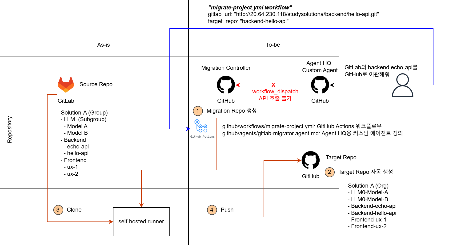 동작 불가 사유: AgentHQ에는 workflow dispatch 권한이 빠져 있음.